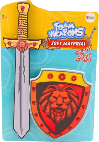 - Kompletny zestaw: piankowa tarcza (19 × 23 cm) i piankowy miecz (43 × 12 cm)