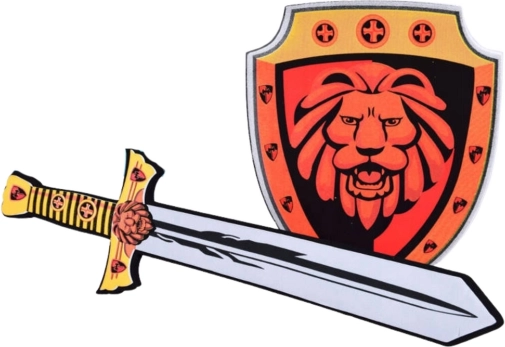 Lekki rycerski zestaw dla dzieci oferuje piankowy miecz i tarczę z wyrazistym herbem lwa. Bezpieczna pianka amortyzuje uderzenia, dzięki czemu zabawa jest dynamiczna, ale bez siniaków. Idealny do zabaw dziecięcych i kostiumów.