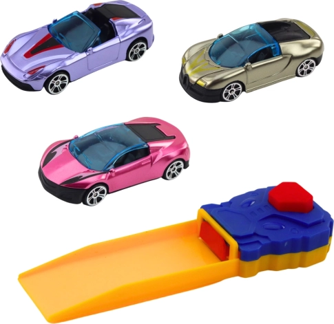 W zestawie znajdują się 3 kolorowe autka, które idealnie pasują do wyrzutni, zapewniając dynamiczną zabawę. Kompaktowe wymiary pozwalają zabrać zestaw wszędzie – na plac zabaw, do przedszkola i na wakacje.