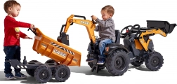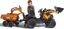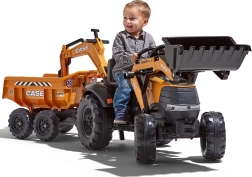 Solidny traktorek na pedały CASE IH Backhoe marki FALK ucieszy każdego małego budowniczego. Oferuje ruchomą przednią łyżkę, funkcyjny ładowacz, odpinaną przyczepę oraz obrotowe siedzisko. Dzięki napędowi łańcuchowemu, skrętnej przedniej osi i wytrzymałym plastikowym kołom to stabilny i bezpieczny towarzysz dla dzieci od 3 lat o udźwigu do 50 kg.