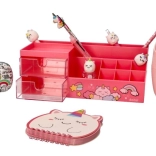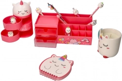 Praktyczny i uroczy dodatek do pokoju dziecięcego i biura. Kompaktowy organizer pomaga utrzymać porządek na biurku, a jednocześnie dodaje przestrzeni wesołego charakteru z motywem jednorożca.