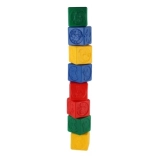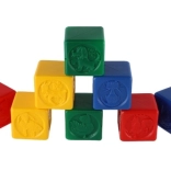 Zawartość opakowania obejmuje osiem klocków, które są umieszczone w praktycznym pudełku o wymiarach 12 x 12 x 12 cm.
