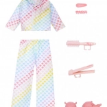 Kolorowy komplet piżamowy (bluzka i spodnie) doda lalkom radosnego looku, idealnego na nocowanki i wieczorny relaks.
