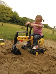 Dzieci mogą swobodnie obracać się ze sprzętem wokół osi pionowej i łatwo nabierać oraz przenosić materiał we wszystkich kierunkach – jak na prawdziwej budowie.