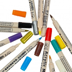 Wodoodporne akrylowe markery do tekstyliów i kamieni DIY to idealny wybór dla każdego, kto kocha tworzyć na różnorodnych powierzchniach. Zestaw zawiera 12 markerów w różnych kolorach, odpowiednich do malowania na tkaninach, kamieniach i innych materiałach.