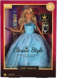 Odkryj magię świata księżniczek z laleczką ANLILY w stylowej niebieskiej sukni. Dzięki ruchomym przegubom dzieci mogą bawić się naturalnym pozowaniem, rozwijając motorykę małą i wyobraźnię. Lalka łatwo się czesze i przebiera, co wspiera kreatywną zabawę i tworzenie własnych historii.