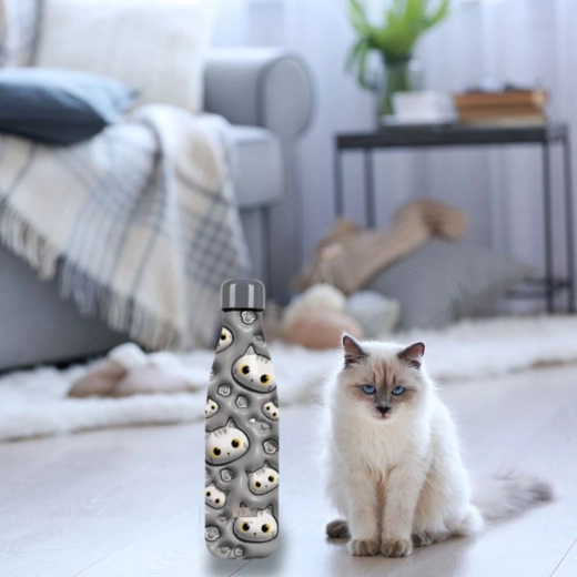 Stylowy termos z motywem białej kotki utrzymuje napoje długo ciepłe lub zimne. Dzięki kompaktowym wymiarom jest idealny w podróż, do pracy i do szkoły, a jego kolorowe wykończenie ucieszy miłośników kotów.