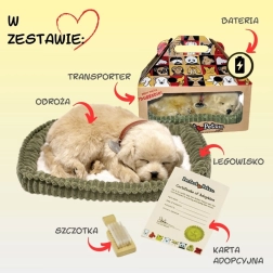 Szczenię wygląda jak prawdziwy śpiący piesek – doskonałe do relaksu i wyciszenia przed snem.