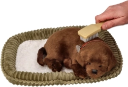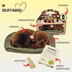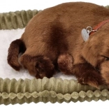 Mięciutki czekoladowy labrador wygląda wyjątkowo realistycznie – zamknięte oczy, miękkie futerko, obróżka z zawieszką i wygodne legowisko tworzą wrażenie prawdziwego śpiącego szczeniaka. Zabawka wprowadza spokojną atmosferę w domu i pokoju dziecięcym, ciesząc małych i dużych miłośników psów.