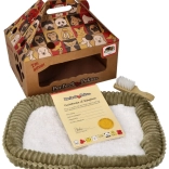 W zestawie znajduje się wygodne, teksturowane legowisko, na którym kociątko śpi – piękna dekoracja do pokoju i przytulny towarzysz na kanapę.