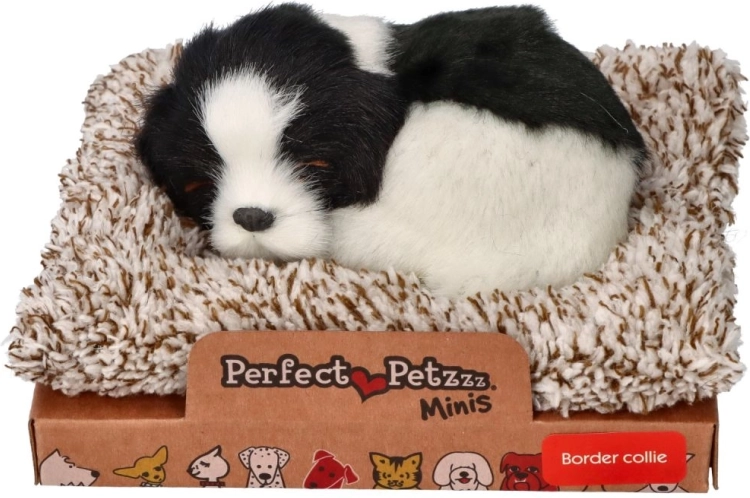 Urocza figurka śpiącego border collie na legowisku ucieszy każdego miłośnika psów. Świetna dekoracja i prezent dla dzieci od 3 lat, z deklaracją zgodności CE dla bezpiecznego użytkowania.
