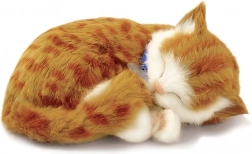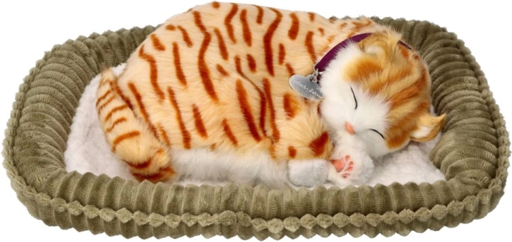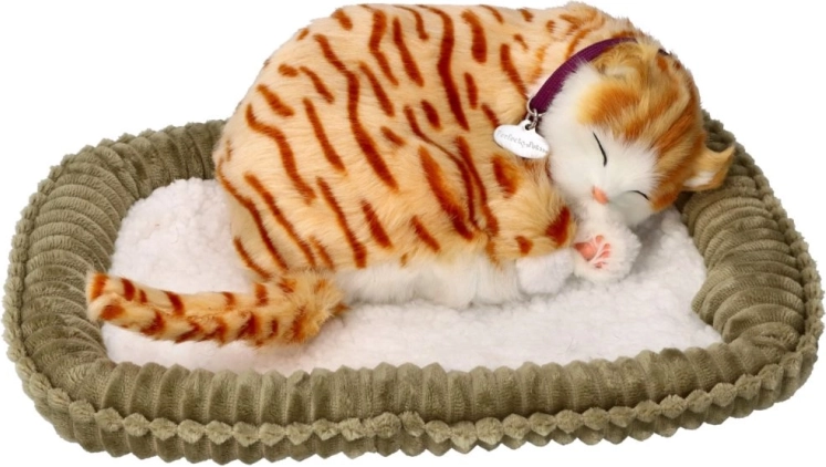 Ta oddychająca pluszowa kotka w wersji rudej pręgowanej kici prezentuje się wyjątkowo realistycznie – ma mięciutką sierść, uroczą obrożę i spokojnie odpoczywa w miękkim legowisku. Delikatny ruch naśladujący oddech przynosi poczucie spokoju i bezpieczeństwa, dlatego idealnie sprawdzi się jako kojący towarzysz dla dzieci i dorosłych.