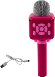 Ten różowy, bezprzewodowy mikrofon jest idealny dla małych śpiewaków. Przyciski sterujące są intuicyjne – łatwo ustawisz głośność, przełączysz utwory, uruchomisz nagrywanie lub odtwarzanie. Działa samodzielnie i w trybie Bluetooth, więc połączysz go z telefonem lub tabletem i zaśpiewasz z ulubionymi podkładami.
