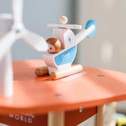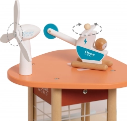 Wspiera myślenie ekologiczne i uczy dzieci o odnawialnych źródłach energii dzięki elementom takim jak panele słoneczne i wiatrak.