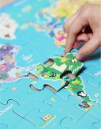 Dzięki tym kolorowym puzzlom dzieci uczą się rozpoznawać kontynenty i oceany w angażujący, zabawny sposób.