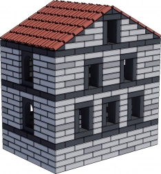 W zestawie znajdują się trójkątne wsporniki, okna łukowe oraz 32 dachowe elementy – idealny dodatek do wykończenia każdej budowli.