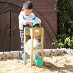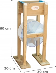 Wsyp piasek lub wlej wodę do leja i patrz, jak niebieskie koło zaczyna się kręcić. Dzieci intuicyjnie zrozumieją zasadę ruchu i energii oraz rozwiną logiczne myślenie.