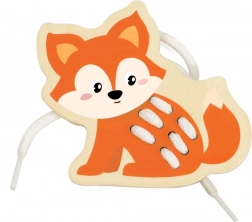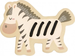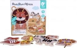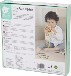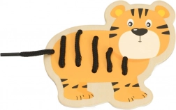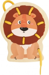 Zestaw zawiera 5 zwierzątek z Afryki (żyrafę, lwa, tygrysa, lisa i zebrę) oraz 5 kolorowych sznurówek. Gładkie drewniane elementy z bezpieczną powłoką dobrze leżą w dziecięcych dłoniach, a żywe barwy wspierają rozpoznawanie kolorów i nazywanie zwierząt.