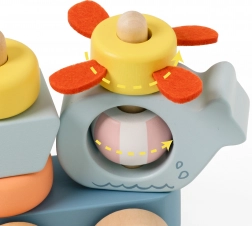 - sznureczek do ciągnięcia, układanie i piętrowanie klocków