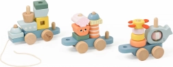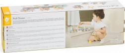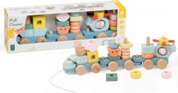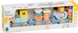 Drewniany pociąg do ciągnięcia Ocean od CLASSIC WORLD w pastelowych kolorach łączy zabawę i naukę – rozwija małą motorykę, koordynację i wyobraźnię. Dzieci układają kształty z motywem oceanu, łączą trzy wagoniki i dzięki sznureczkowi mogą pociąg ciągnąć podczas pełzania i chodzenia.