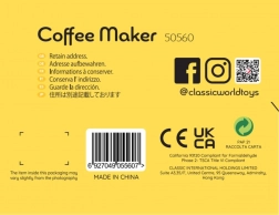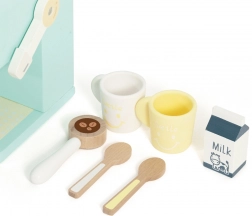 Rączka, obrotowe pokrętła i akcesoria pozwalają dzieciom naśladować przygotowanie kawy jak w prawdziwej kawiarni.