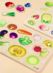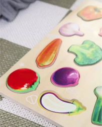 Każdy element przedstawia inny rodzaj warzywa i ćwiczy rozpoznawanie kształtów, kolorów oraz poszerza słownictwo.