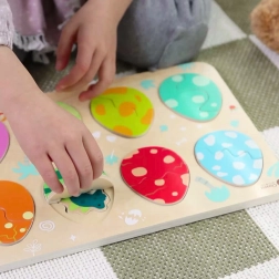 Zabawka jest idealna do rozwijania koordynacji oko–ręka, cierpliwości oraz kreatywnego myślenia. Drewniane elementy z gładkimi krawędziami świetnie leżą w dziecięcej dłoni i wspierają prawidłowy chwyt.