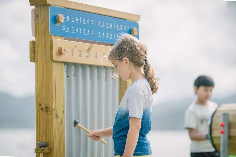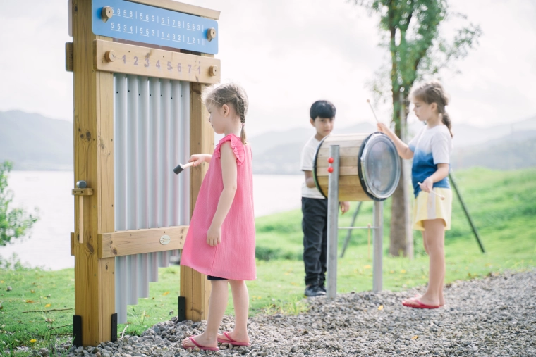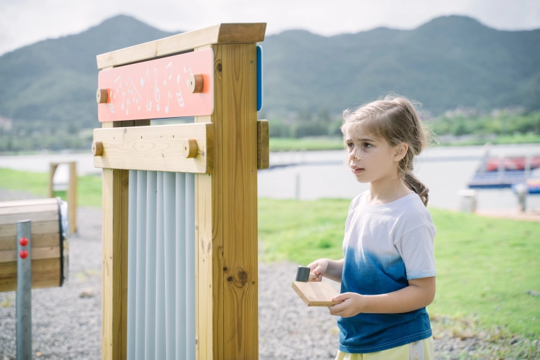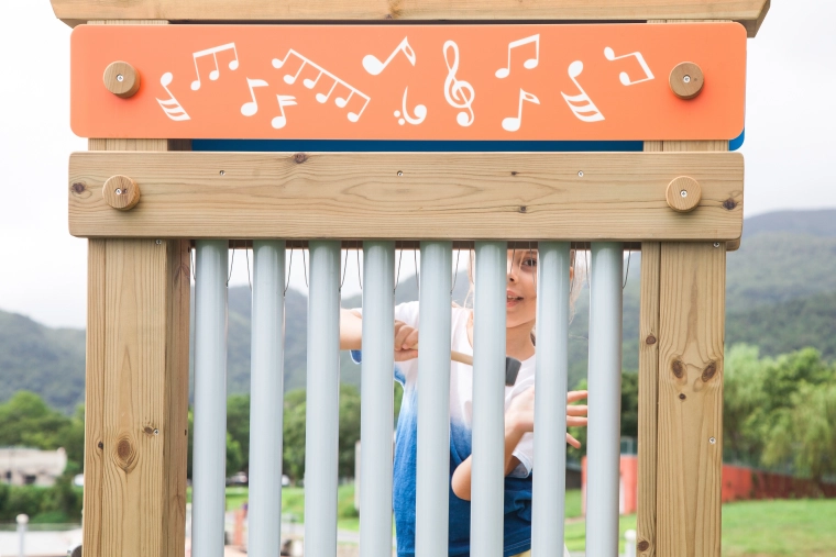 Konstrukcja wykonana jest z wysokiej jakości, gładko wykończonego drewna oraz trwałych elementów metalowych, odpornych na całoroczne użytkowanie na zewnątrz. Gra na dzwonkach rozwija słuch, motorykę, koordynację ręka–oko oraz współpracę między dziećmi. Odpowiednie do przedszkoli, szkolnych dziedzińców, społecznych placów zabaw i prywatnych ogrodów.