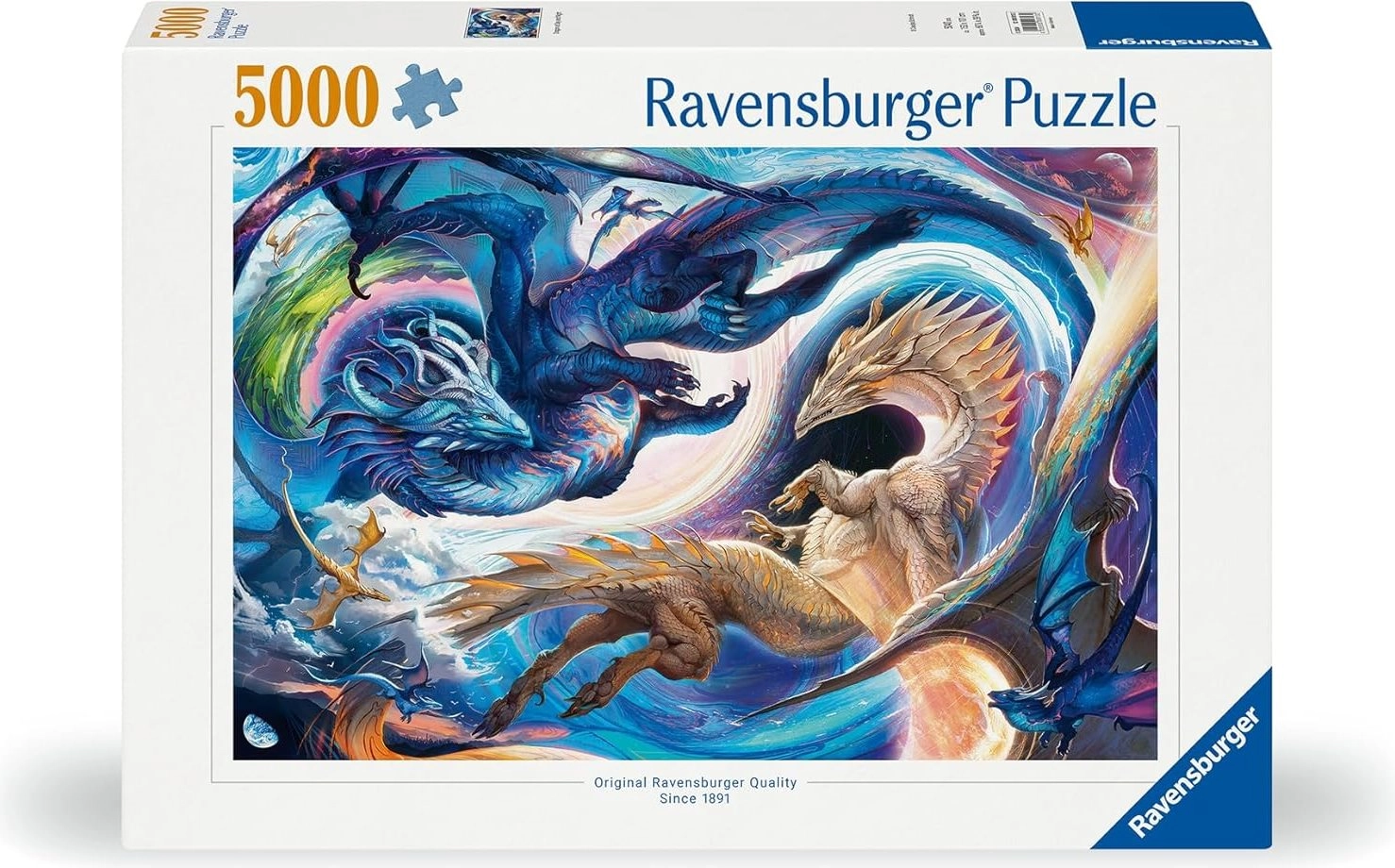 Wnieś do domu magię i przygodę z tym fascynującym puzzle marki Ravensburger. Puzzle Smoki dzień i noc oferują ekscytujące spojrzenie na świat smoków, które z pewnością oczaruje każdego miłośnika fantasy. Dzięki imponującej liczbie 5000 elementów ta układanka jest doskonałym wyzwaniem dla wszystkich, którzy lubią bardziej złożone zadania.