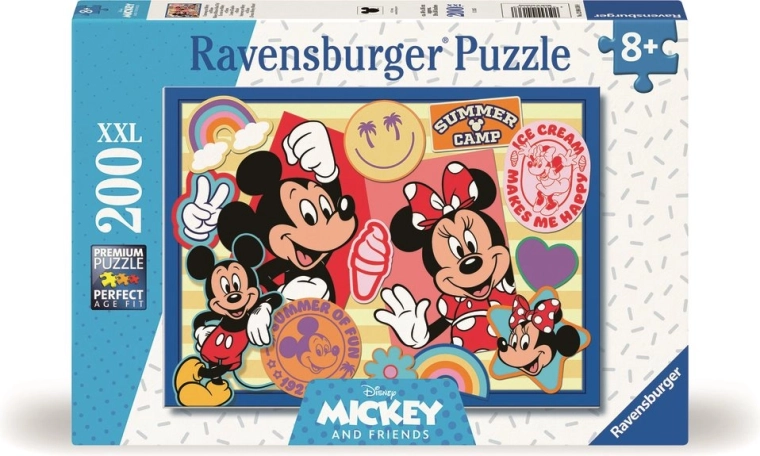 Puzzle RAVENSBURGER Mickey i Minnie na wycieczce, 200 elementów XXL. Wysoka jakość, precyzyjne dopasowanie, wymiary po ułożeniu 49 × 36 cm. Świetne dla dzieci.