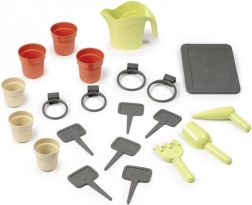 W zestawie znajduje się 21-elementowy komplet narzędzi: konewka, grabki, łopatka, pikownik, znaczniki do doniczek i inne. Dzieci mogą siać, przesadzać i podlewać, obserwować przyrodę przy karmniku dla ptaków oraz rozwijać odpowiedzialność i współpracę.