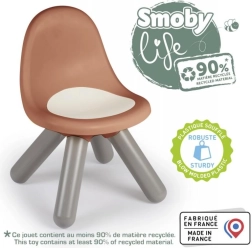 To dziecięce krzesełko w ceglastym kolorze łączy nowoczesny design, trwałość i zrównoważoność. Dzięki zabezpieczeniu anti-UV długo zachowuje kolory i nadaje się na taras, balkon oraz do pokoju dziecięcego. Solidna konstrukcja zapewnia bezpieczne siedzenie dla dzieci, a jednocześnie krzesełko pozostaje lekkie, co ułatwia przenoszenie.