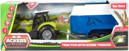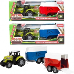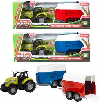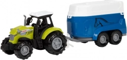 Odkryj zabawę na farmie z realistycznym zestawem łączącym zielony traktor i przyczepę do przewozu koni. Zabawka oferuje efekty światła i dźwięku, które potęgują atmosferę prawdziwej farmy, a dzięki napędowi freewheel łatwo porusza się po różnych podłogach.
