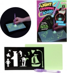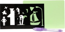 Ten zestaw zawiera tabliczkę i długopis z niewidzialnym atramentem, idealny do pisania tajnych listów. Atrament jest niewidoczny w normalnych warunkach oświetleniowych, ale w ciemności zaczyna świecić, co gwarantuje wyjątkowe i zaskakujące wrażenia dla dzieci. W opakowaniu znajdują się także szablony dla jeszcze większej zabawy i inspiracji.