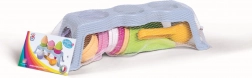 Praktyczne opakowanie w siateczce łatwo przenosić i przechowywać. Dzięki stojakowi dzieci mają wszystko pod ręką i mogą bawić się w małą cukiernię. Zestaw jest odpowiedni od 10 miesięcy, a dzięki zaokrąglonym kształtom doskonale leży w dziecięcych dłoniach.