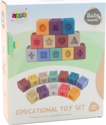 Te miękkie sensoryczne kostki to idealna zabawka edukacyjna dla najmłodszych. Różne kolory, kształty i struktury powierzchni zachęcają do dotyku i odkrywania, a wbudowana piszczałka przy naciśnięciu wydaje dźwięk, który wzmacnia koordynację i percepcję słuchową. Dzięki bezpiecznemu materiałowi kostki łatwo się chwyta, ściska i są odpowiednie także do zabawy w wodzie.