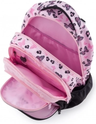 Po bokach znajdują się dwie większe kieszenie. Wewnątrz kryje się szeroka gama kieszeni – od dużych po mniejsze, aby wszystko można było łatwo i szybko znaleźć. Praktyczny uchwyt na klucze lub szkolną identyfikacyjny chip zapewnia, że potrzebne drobiazgi będą zawsze pod ręką.