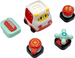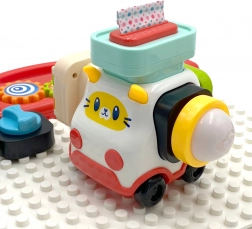 W zestawie znajduje się autko, do którego można dołączać elementy z panelu.