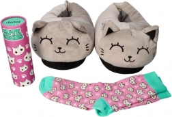 Otul swoje stopy miękką wygodą dzięki tym pluszowym kapciom w kształcie szarych kotków. Mięciutka powierzchnia, urocze haftowane detale i stabilna podeszwa sprawiają, że te kapcie to idealny wybór do domu, na działkę czy leniuchowanie przy telewizji.