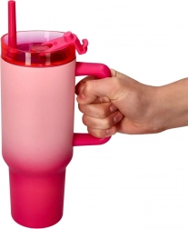 Odkryj wygodę dużego termokubka ze słomką w eleganckim, różowym wykończeniu. Szeroki uchwyt świetnie leży w dłoni, pokrywka minimalizuje rozlewanie, a słomka ułatwia picie nawet w trakcie marszu. Idealny do wody, mrożonej kawy czy lemoniad.