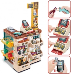 Z zestawem Woopie supermarket dzieci odkrywają świat zakupów i podstaw liczenia. Realistyczne elementy, takie jak świecący i dźwiękowy skaner, kasa z wysuwaną szufladą oraz mechaniczna waga, wiernie naśladują prawdziwy sklep. Stabilny blat ze strefami wiszącymi i półkami na towar oraz przejrzystymi cenówkami wspiera samodzielność i organizację.
