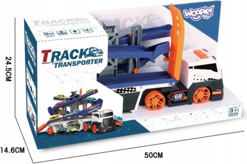 Interaktywny TIR marki WOOPIE łączy tor samochodowy, transporter i funkcje edukacyjne w jednym dynamicznym zestawie. Dzieci doświadczą realistycznych efektów świetlnych i dźwiękowych, a jednocześnie w zabawny sposób poznają angielskie litery i cyfry. Otwierane boczne klapy oraz górna strefa parkingowa ze startami dodają zabawie akcji i pobudzają wyobraźnię.