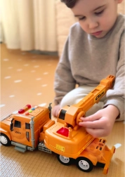 Bezpieczne, plastikowe wykonanie, wytrzymała konstrukcja i intuicyjna obsługa czynią z tego dźwigu świetny prezent dla dzieci, które kochają maszyny budowlane i dynamiczną zabawę.