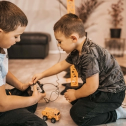 W zestawie znajdziesz ciężarówkę, koparkę, wiadro i belkę. Akcesoria wspierają wyobraźnię, zabawę w odgrywanie ról i długie godziny kreatywnej zabawy.