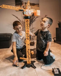 Żuraw obraca się w pełni i umożliwia podnoszenie, opuszczanie oraz przesuwanie ładunków po ramieniu – dokładnie jak na prawdziwej budowie. Świetna zabawa i trening koordynacji.