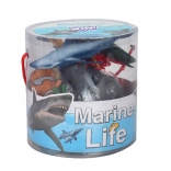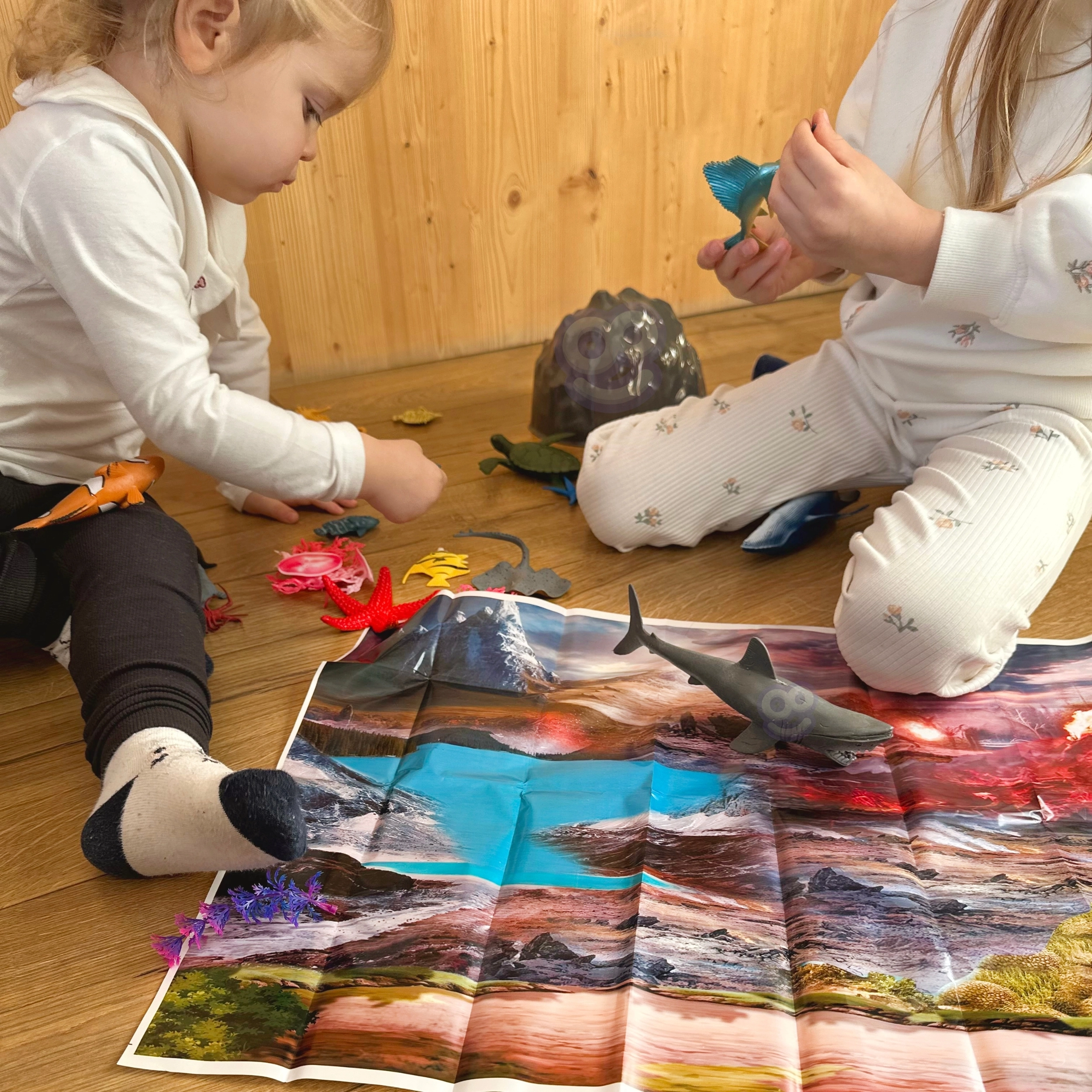 21 zwierząt morskich, 10 roślin, podkładkę oraz