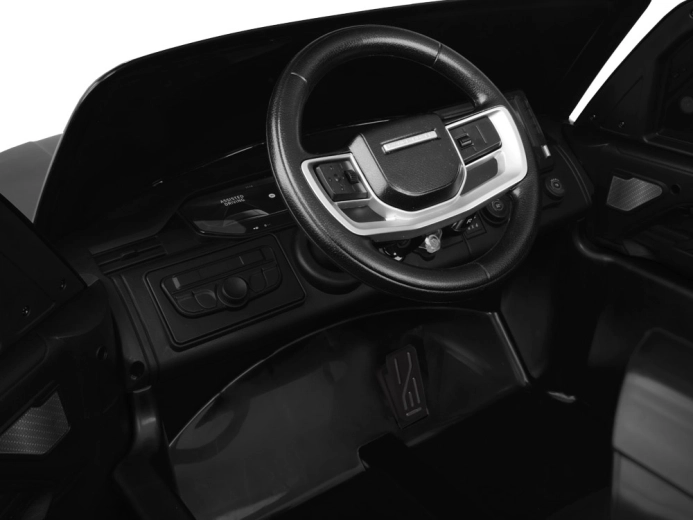 Kolorowy wyświetlacz multimedialny odtworzy wgrane piosenki, własne treści z USB/SD, obsługuje Bluetooth, radio i oferuje sterowanie dotykowe. Przełącznikiem można zmieniać napęd 2x4 / 4x4 w zależności od terenu. Miękkie opony EVA tłumią nierówności i zapewniają cichą, wygodną jazdę.