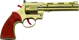 Złoty rewolwer na kapiszony wyróżnia się atrakcyjnym metalicznym wyglądem i wiernymi detalami. Został zaprojektowany tak, aby był całkowicie bezpieczny – nie wystrzeliwuje żadnych pocisków i generuje jedynie realistyczny dźwięk strzału. Dzięki temu jest świetnym wyborem do scen teatralnych, sesji zdjęciowych, kostiumów karnawałowych i domowej zabawy.
