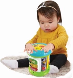 Boczny bębenek dodaje zabawne dźwięki i efekty, które rozwijają poczucie rytmu i percepcję słuchową.