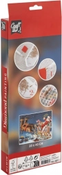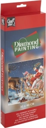 - Sposób użycia: Płótno jest pokryte folią z warstwą klejącą. Usuwaj ją stopniowo podczas aplikacji kamyczków. Kamyczki przytwierdzasz za pomocą wosku w końcówce pióra. Po zużyciu kamyczków, włóż je z powrotem do torebki i kontynuuj z kolejnym kolorem.